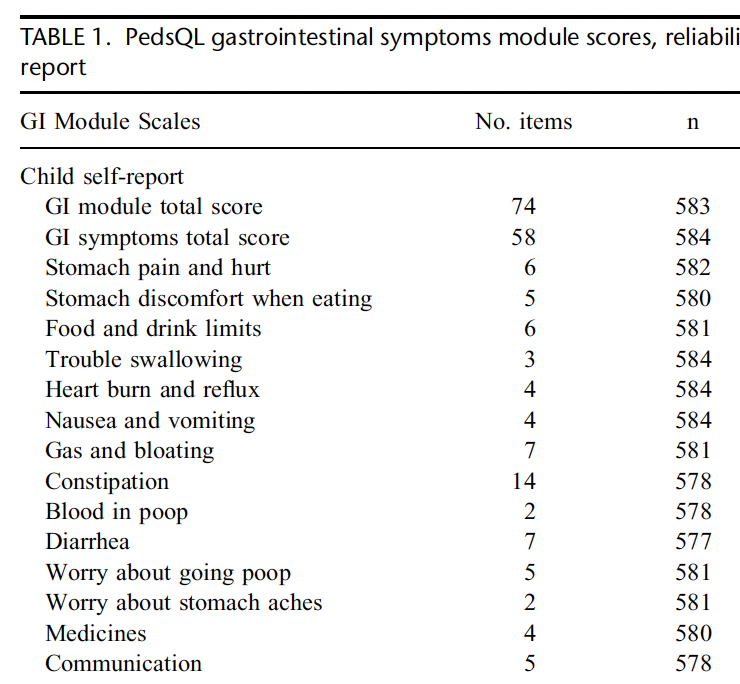 Pediatric Quality of Life Inventory Gastrointestinal Symptoms Module